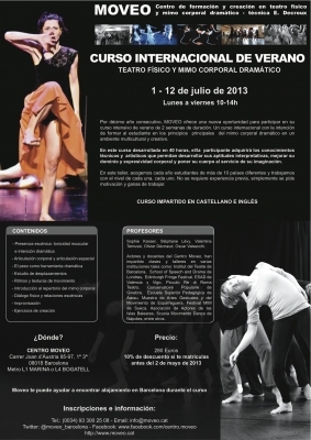 Por décimo año consecutivo, MOVEO ofrece un curso internacional con la intención de formar al participante en los principios más importantes del mimo corporal dramático en un ambiente multicultural y creativo.